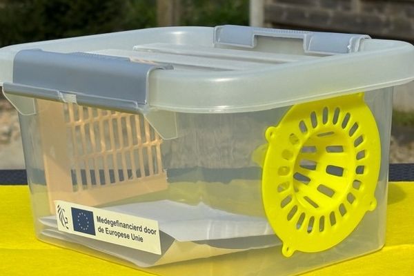 We werken alleen met selectieve vallen zoals te zien is de foto. Dit zorgt ervoor dat we enkel de Aziatische hoornaar vangen en we geen bijvangst hebben.